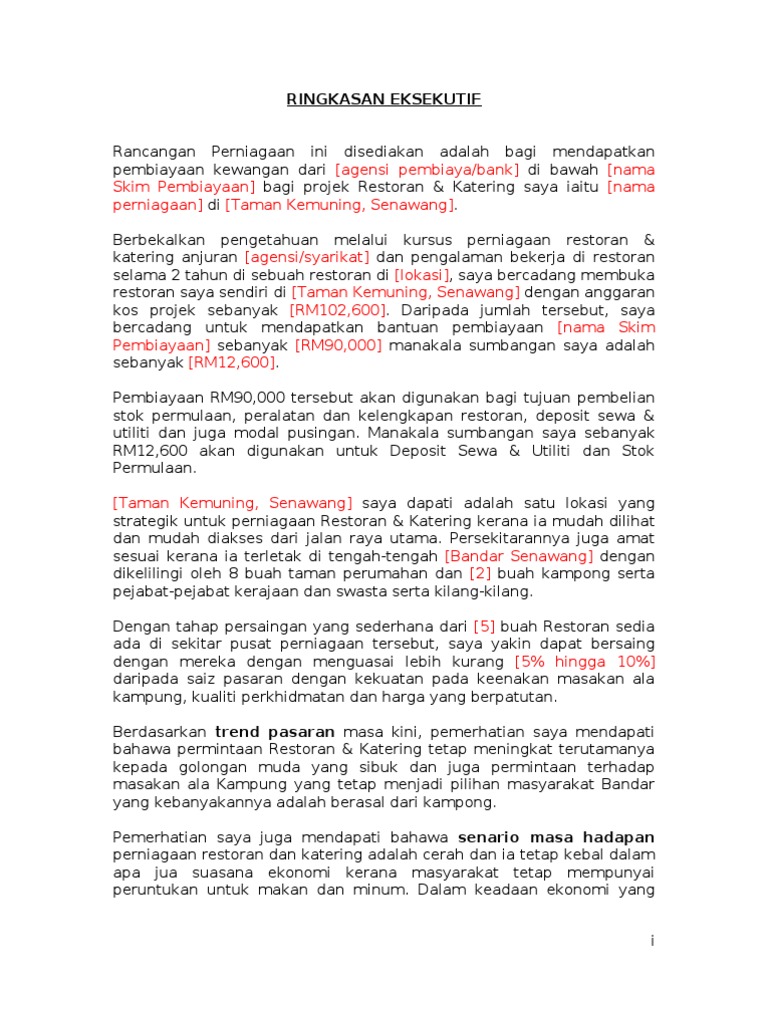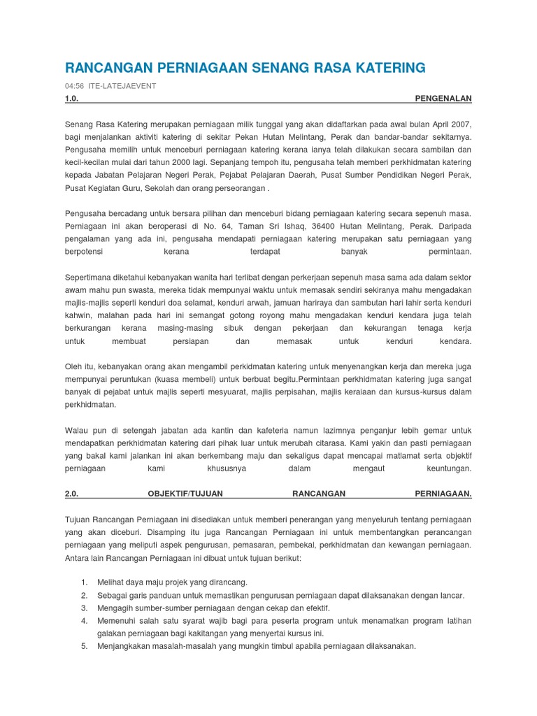 Contoh Kertas Kerja Rancangan Perniagaan Catering Otosection